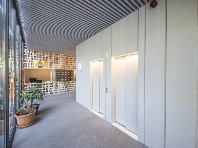 En coherencia con este planteamiento, el diseño de los ascensores de Orona se integra de forma natural en la arquitectura del edificio, respetando su materialidad y su lógica ambiental. La movilidad vertical se entiende así como un elemento más del sistema de confort y sostenibilidad del conjunto, aportando funcionalidad sin interferir en la calidad espacial de los espacios comunes.