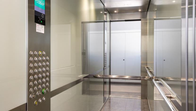 Para garantizar una movilidad fluida en sus más de 30 plantas, el complejo incorpora seis ascensores Orona, distribuidos en dos grupos de tres equipos. Esta configuración en dos tríplex permite optimizar los tiempos de espera y asegurar un desplazamiento cómodo y eficiente para todos los residentes, incluso en horas punta. Una solución de alta capacidad y fiabilidad para un edificio pensado para vivir en vertical.