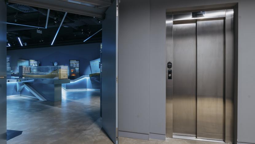 O elevador, com um design robusto e discreto em aço inoxidável, adapta-se à estética industrial e científica do museu, permitindo o fluxo contínuo de visitantes entre as diferentes salas imersivas. O seu funcionamento silencioso e fiável assegura que a narrativa do museu não seja interrompida, mantendo a continuidade de uma visita que combina conhecimento, emoção e impacto visual.